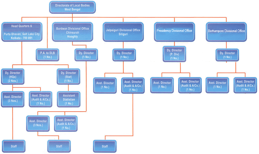 The Directorate now consists of a Central Office, and in addition there are divisional offices at Chinsurah ( for Burdwan Division) and at Siliguri (for Jalpaiguri Division).